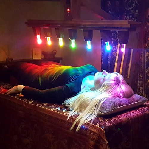 Each crystal light consists of 7 clear quartz crystals that are used in conjunction with light to focus energy on the chakras. As colored light shines through each crystal, the light radiates energy through the charged crystal. Chakras are balanced, cleansed, and aligned, allowing the body’s own natural healing mechanisms to function as they were meant to do.